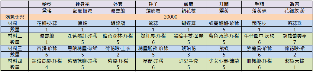 小編為大家整理【韶顏傾城】每個部件製作所需材料,大家努力收集吧!