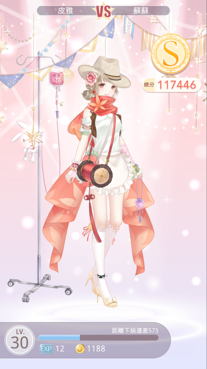 本關在任務提示中要搭配師製作連身裙「紅莓絹蝶」,再加上注意風格屬性的搭配,就可以獲得S囉!