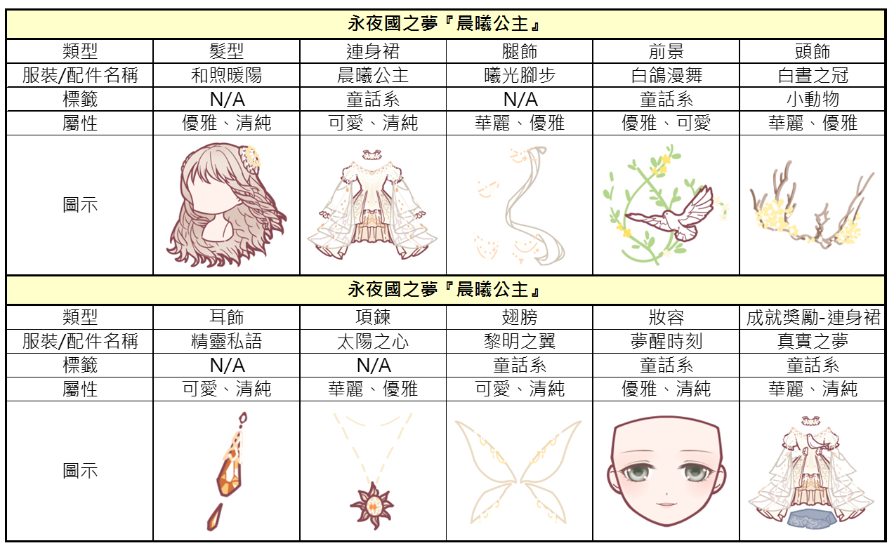「晨曦公主」套裝介紹: