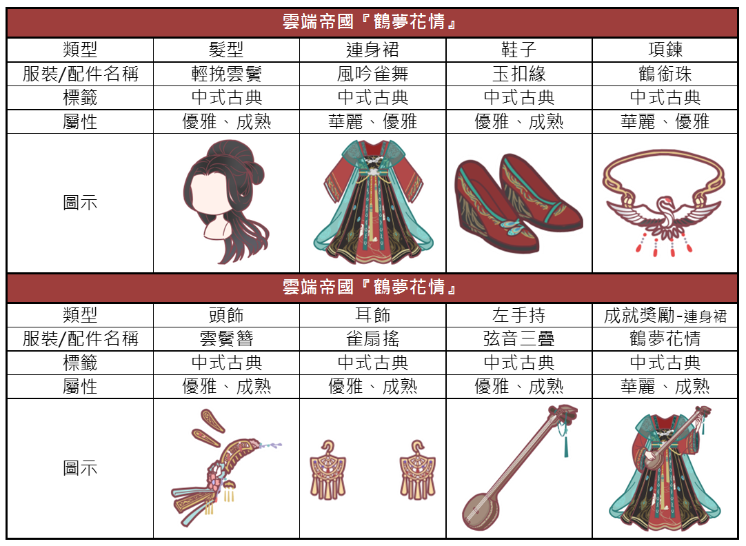 「鶴夢花情」套裝介紹: