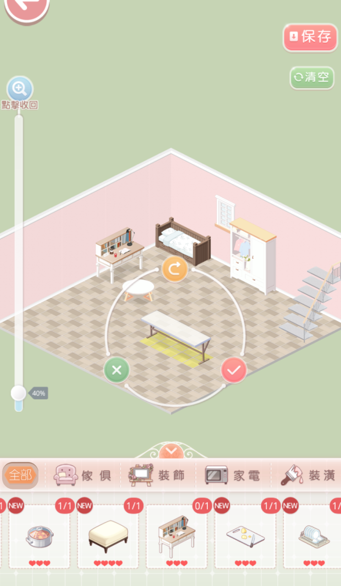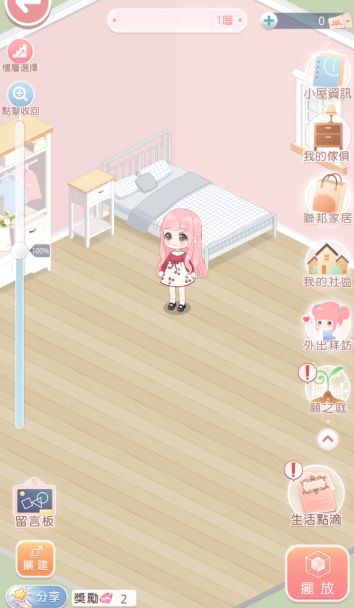 2.預設的【小屋】只有1層,搭配師首次進入小屋時,系統將免費贈送6件傢俱。