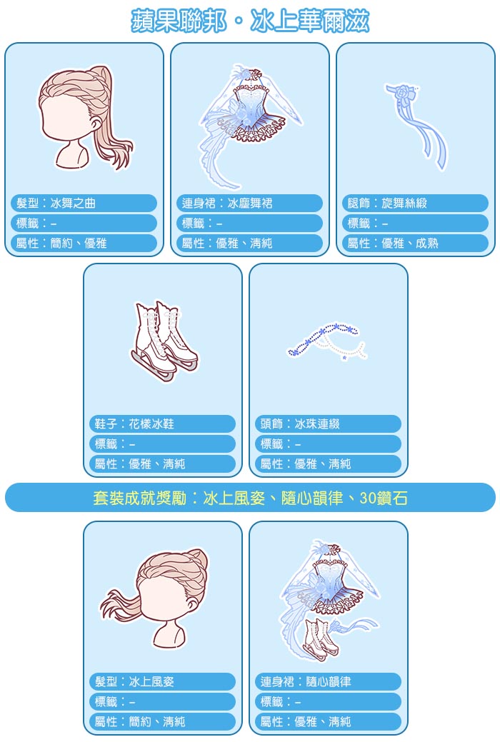 在製作的同時,也別忘了大喵限時任務【冰上華爾滋】套裝,活動時間是2018/02/09 05:00 ~ 2018/02/12 23:59,在活動時間內完成套裝即可獲得99體力+90000金幣+9星光幣好禮喔!