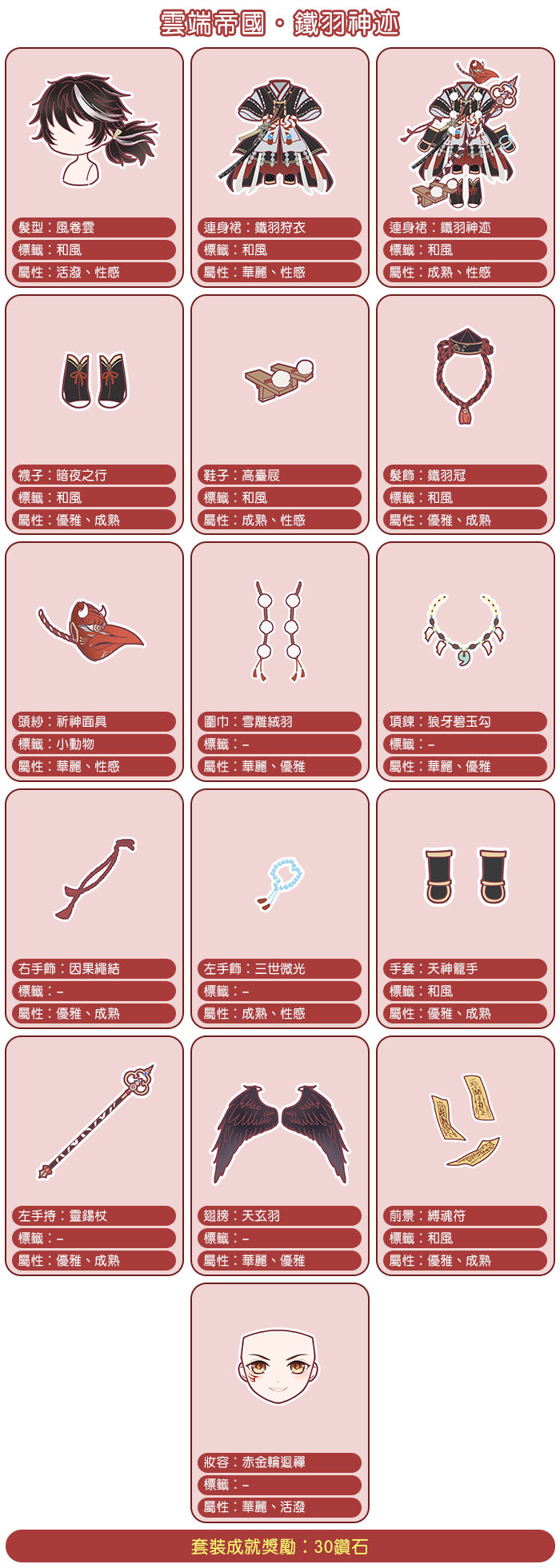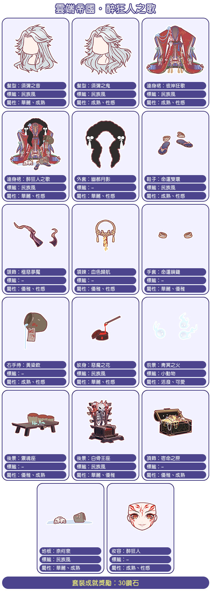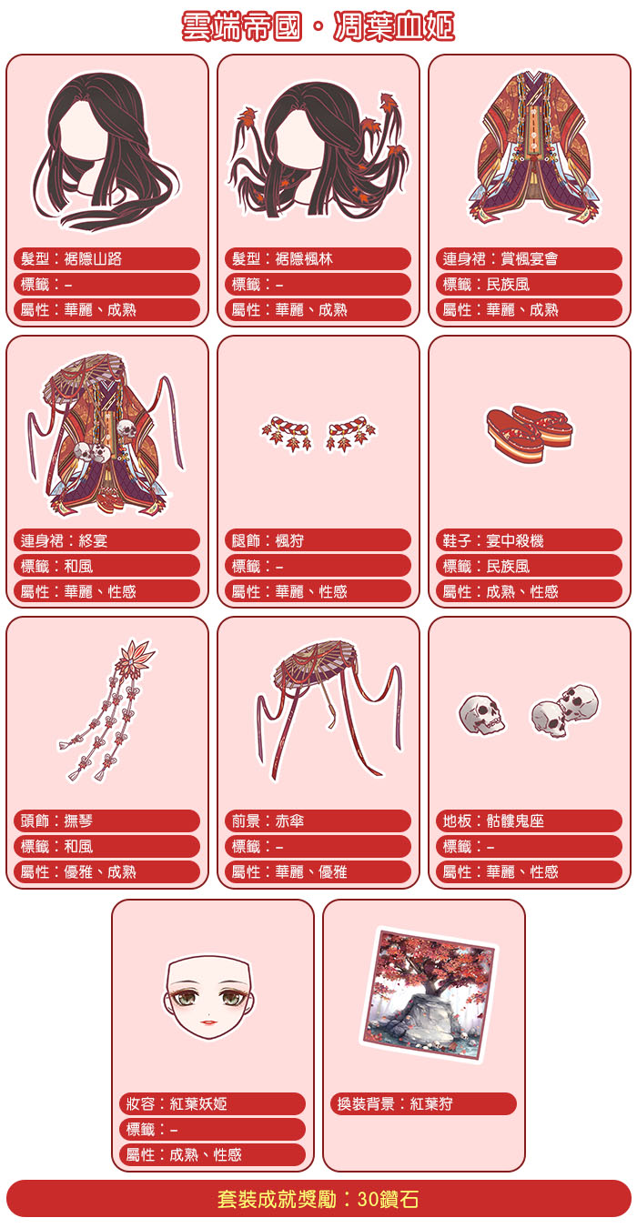 首先,小編不得不說這次的套裝真的都很漂亮,但對於非洲編來說,這次的套裝要全部收集難度真的有點高,除了花體花鑽外,還要跟各位神人暖粉們拚排名,在這邊非洲編先跪求各位神人暖粉,請務必手下留情,讓小編可以..... (;´༎ຶД༎ຶ`) 不囉嗦,來看這次邪惡的百鬼夜行活動介紹吧!