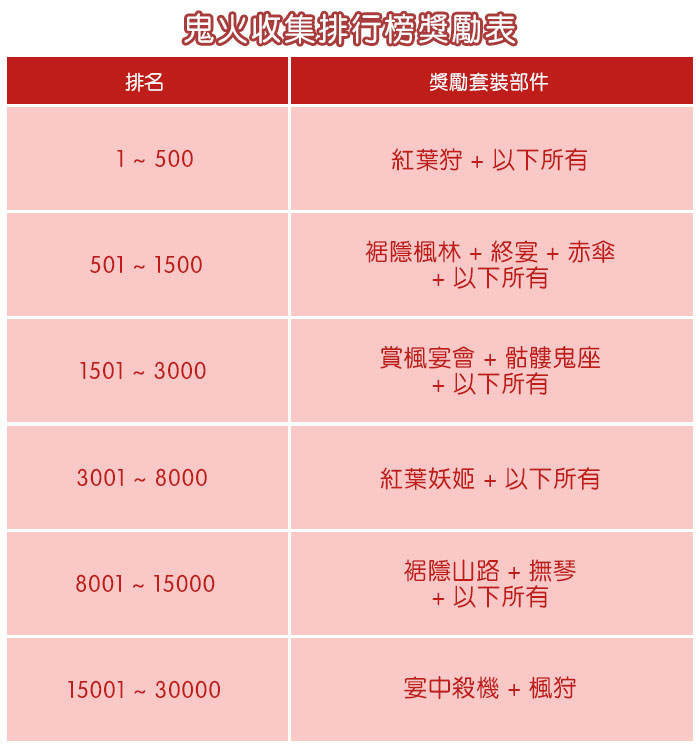 【百鬼夜行 – 鬼火收集排行榜獎勵】