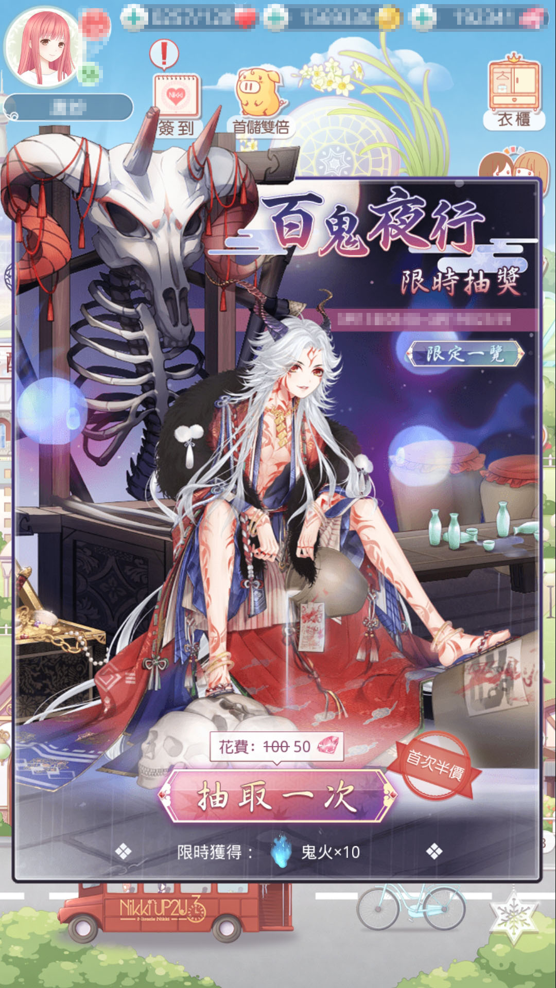 限定在活動期間2018/03/15 05:00 ~ 2018/03/22 23:59內出現的抽獎閣,首抽一次50鑽,之後將恢復為一抽100鑽,並每一抽可獲得10個鬼火。需要注意的是,本抽獎閣沒有每天免費抽的機制。