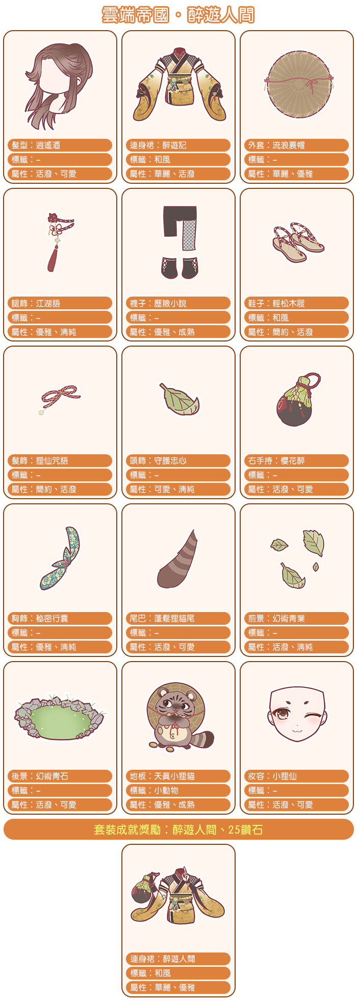 在活動期間2018/03/15 05:00 ~ 2018/03/22 23:59只要單筆儲值達到430鑽,就可以獲得【醉遊人間】套裝!是不是很心動呢~~