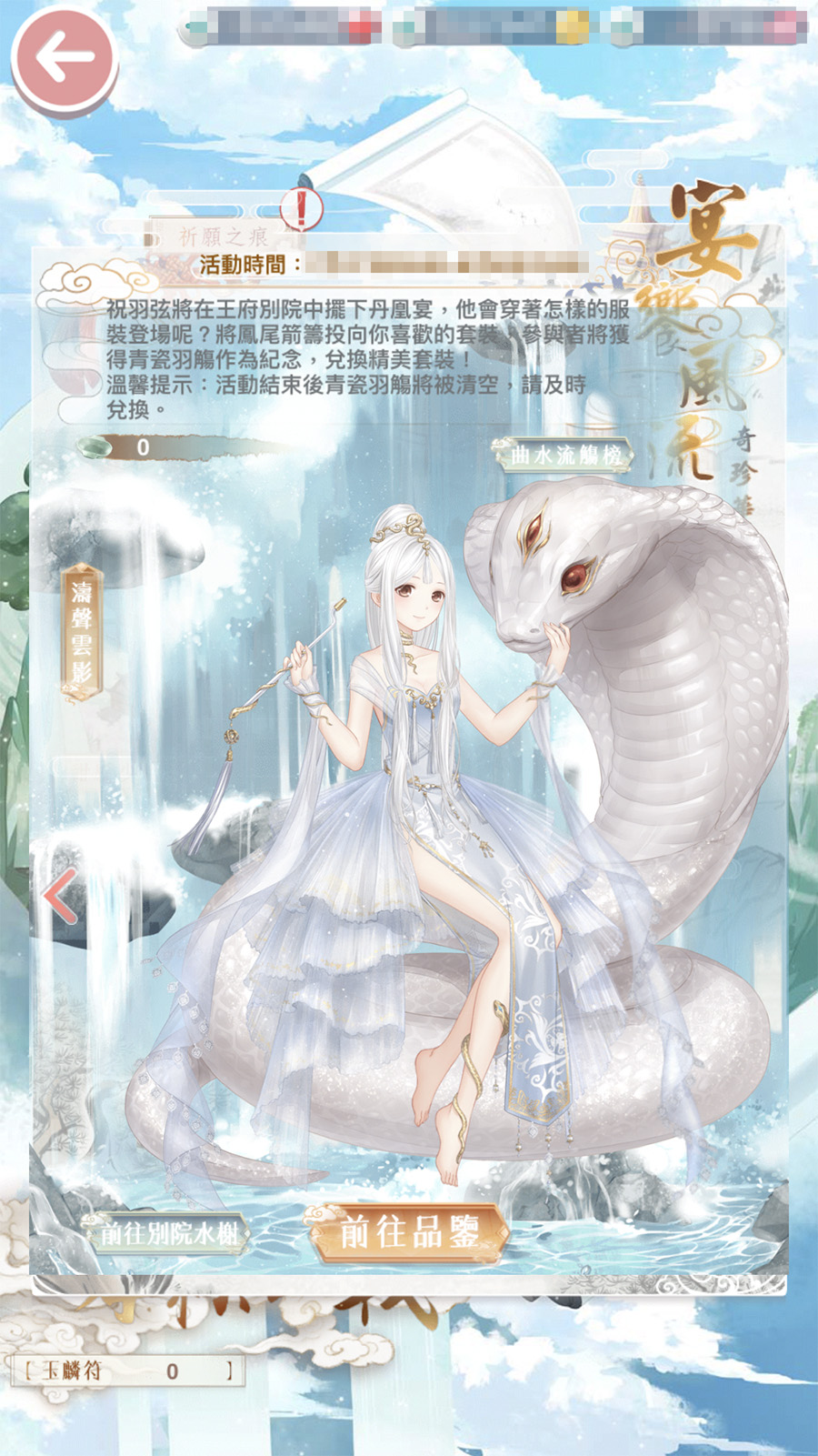 宴上有一白色衣裳的女子竟能與蛇共舞,令四方才士都讚嘆不已。