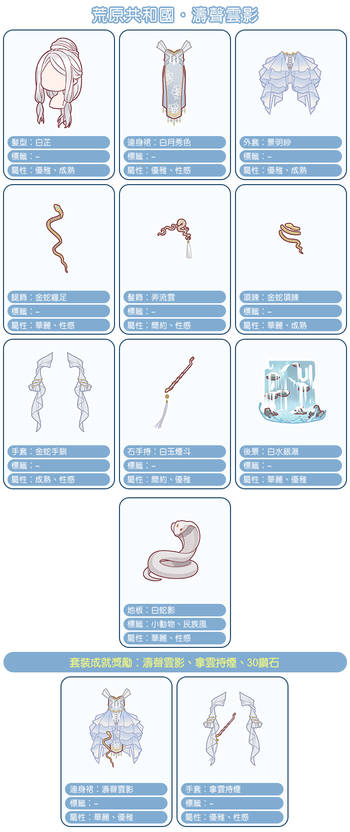 這兩套蛇蛇的套裝都好唯美,各有風格卻又帶點性感啊!尤其那個裸紗的旗袍,性感度爆表,暖暖不愧是我們的時尚達人,總是走在時尚的尖端啊!