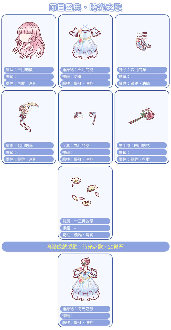【時光之歌】套裝表: