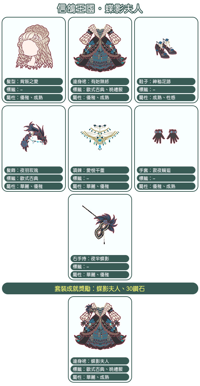 【蝶影夫人】套裝介紹:
