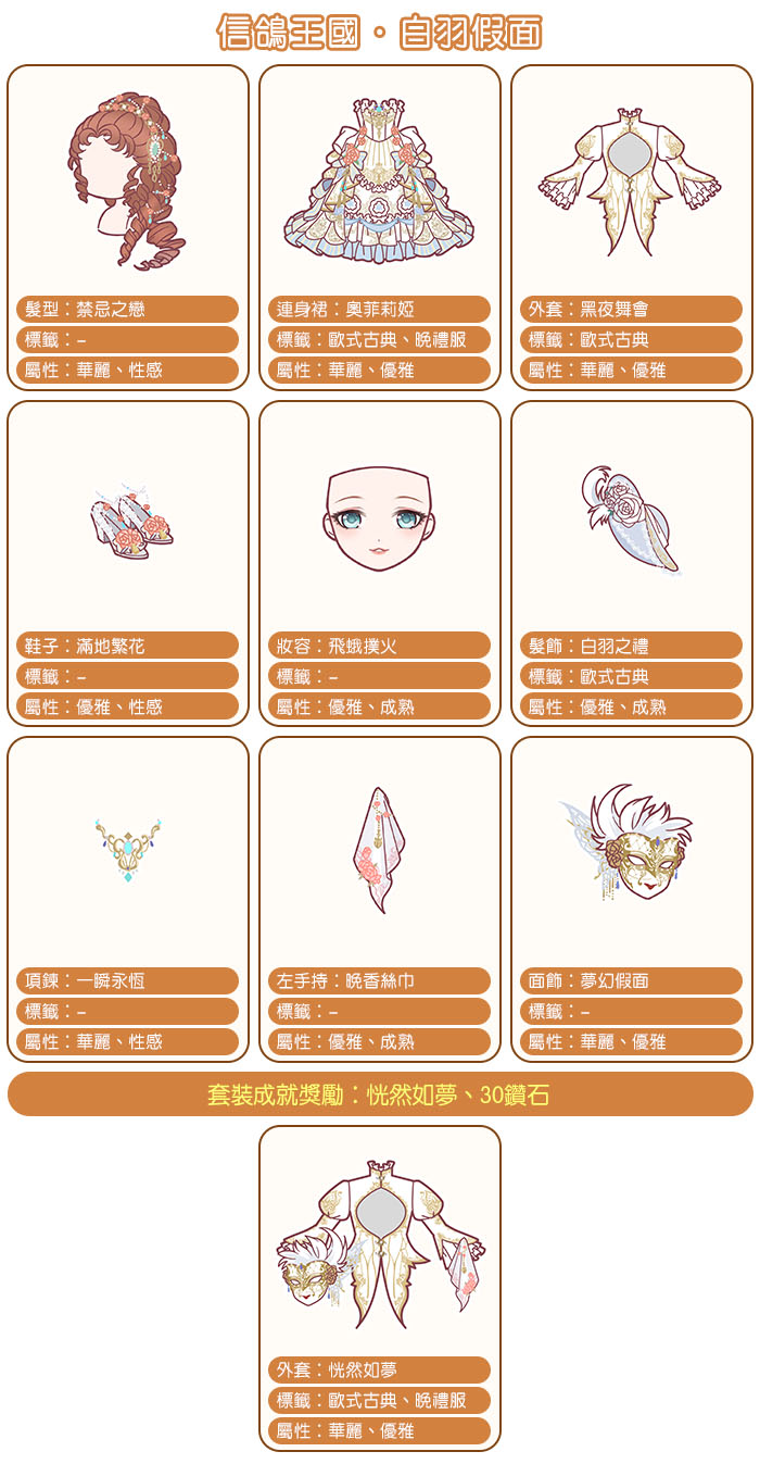 【白羽假面】套裝介紹: