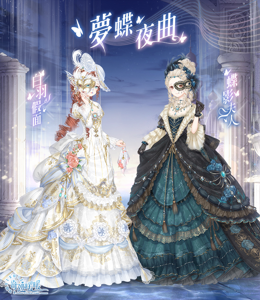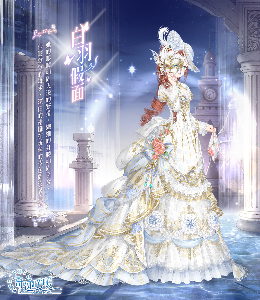 好想跟暖暖一起參加這種舞會喔….穿著華麗的禮服,戴上神秘的假面,與你交際的人都增添了些許神秘感,這樣感覺曖昧的氛圍更強烈了呢~暖粉們看完文章趕快開開心心地拿這兩套高貴華麗又帶點神秘的套裝吧!下次見兒,掰逼~