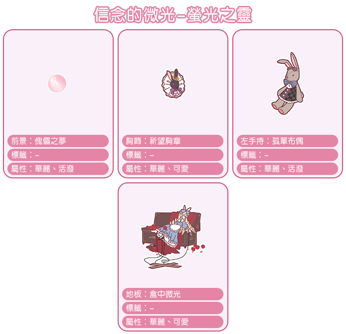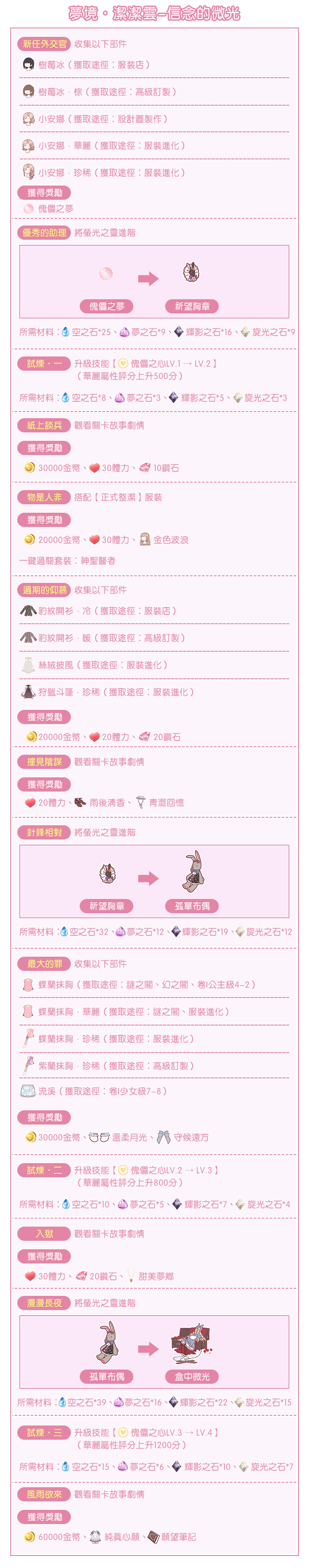 以上就是這次的螢光之靈攻略囉~希望小編的攻略有幫助到暖粉們更了解關卡!看完這次潔潔雲的故事,小編我有點小難過小糾結呢… 而這次贈送的部件套是很可愛的服裝呢~暖粉們心動不如馬上行動,趕快去通關領取吧!那我們下次見,啾咪( ゚∀゚) ノ♡