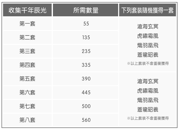 下方是這次兌換套裝所需要的「千年辰光」數量,提供給暖粉們參考喔~