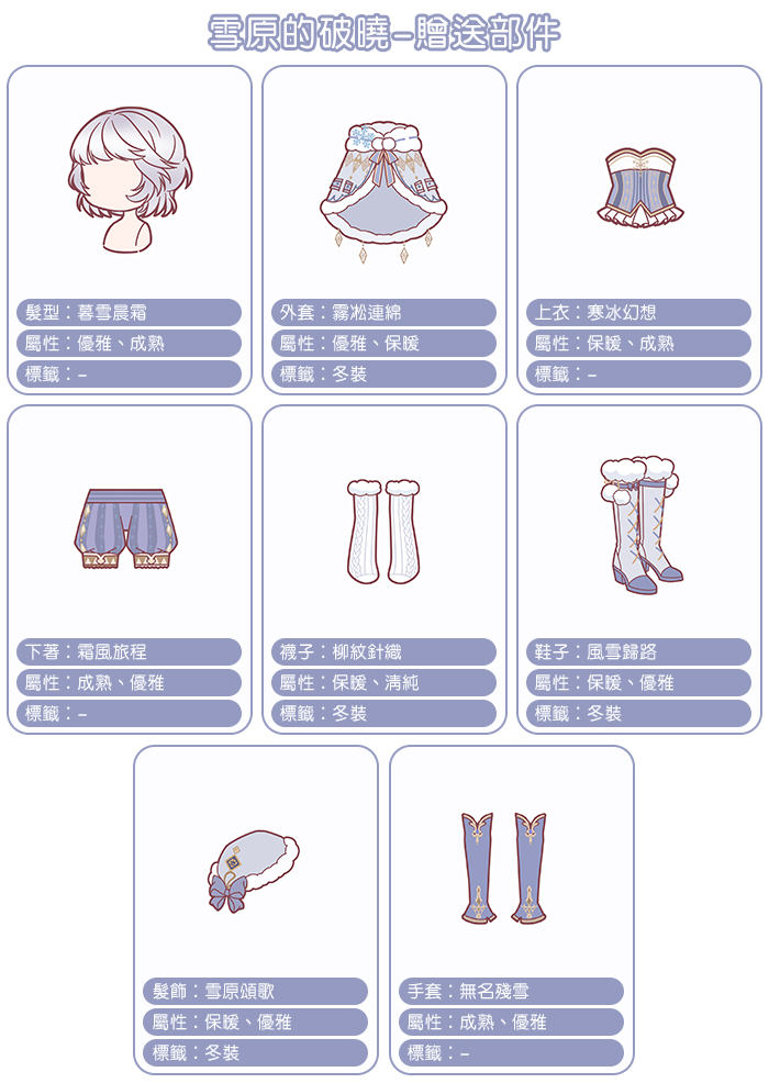 【雪原的破曉】贈送部件介紹: