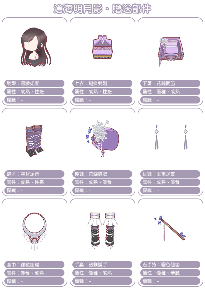 【滄海明月影】贈送部件介紹
