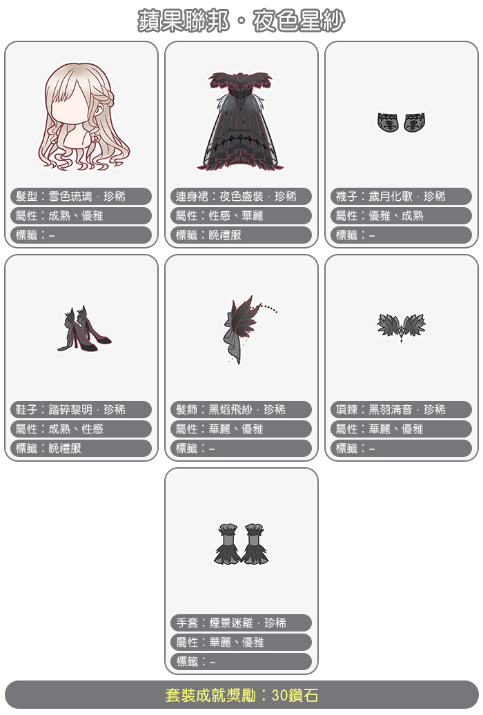 【夜色星紗】套裝介紹: