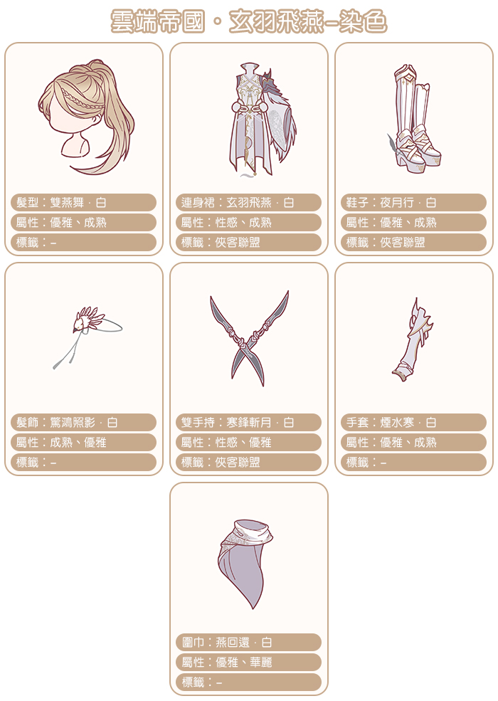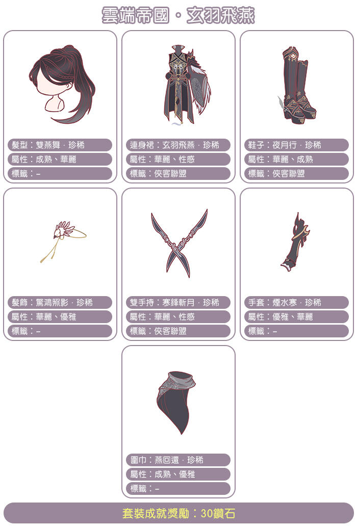 【玄羽飛燕】套裝介紹: