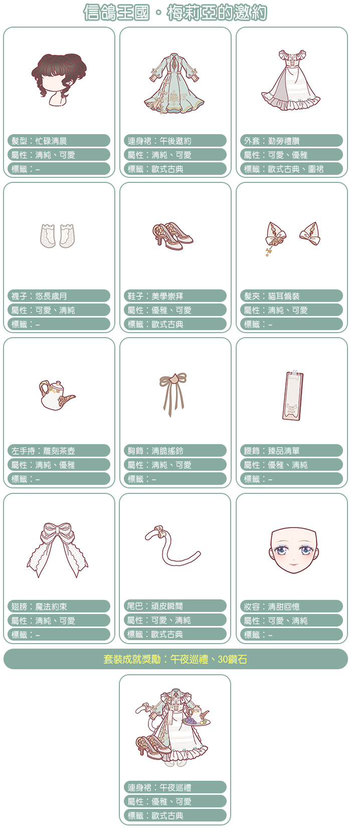 【梅莉亞的邀約】套裝介紹: