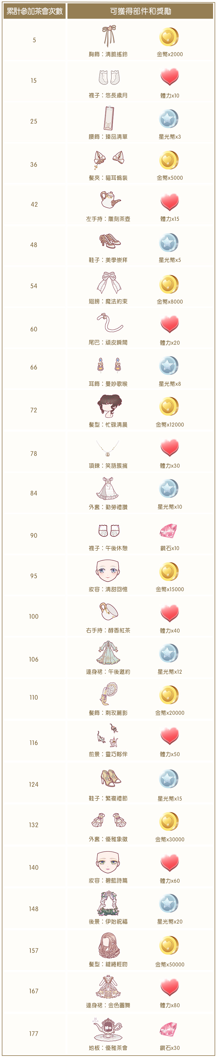 每人每天有五次免費參與的機會,活動結束後「茶會邀請函」將會清空,暖粉們要記得於活動時間內領取對應獎勵喔!