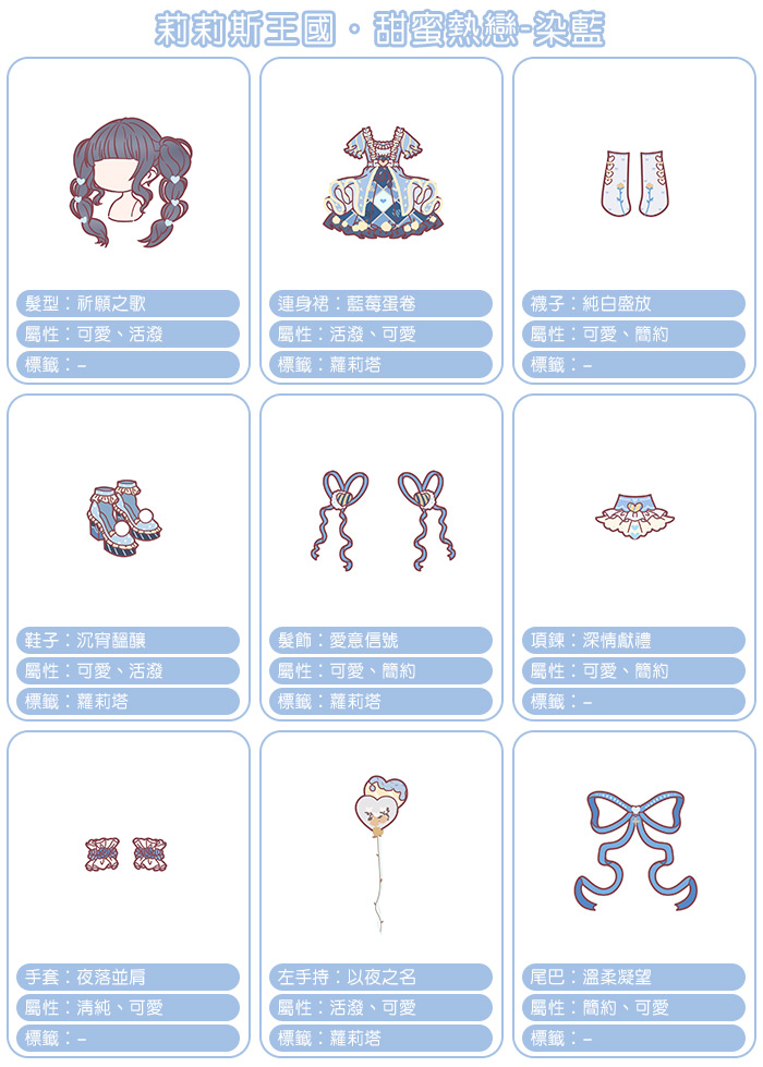 累計儲值310鑽石可獲得【甜蜜熱戀】套裝染色款藍色。
