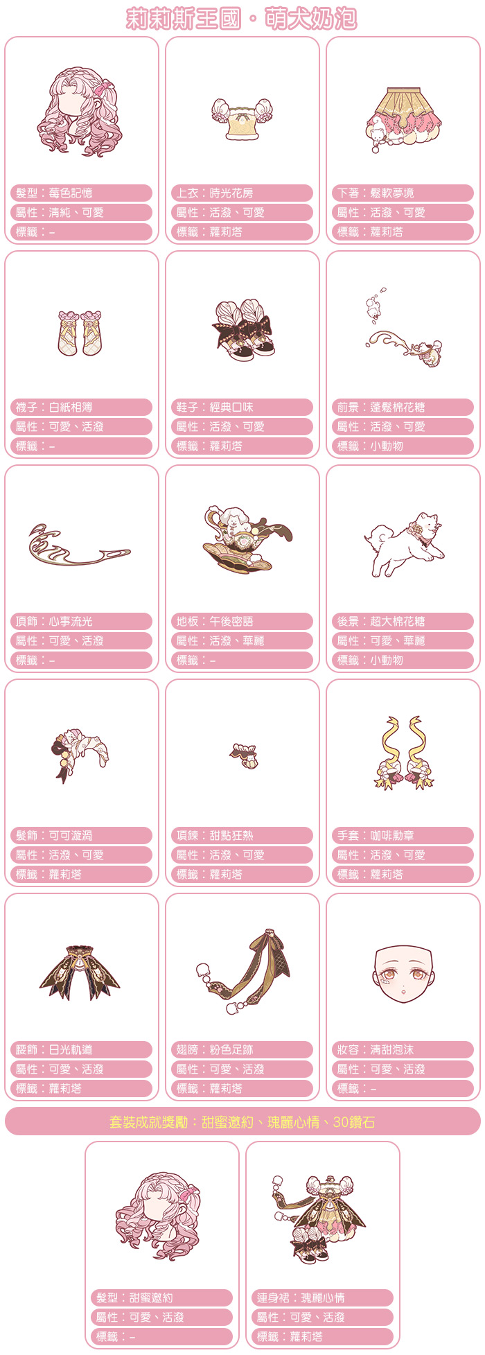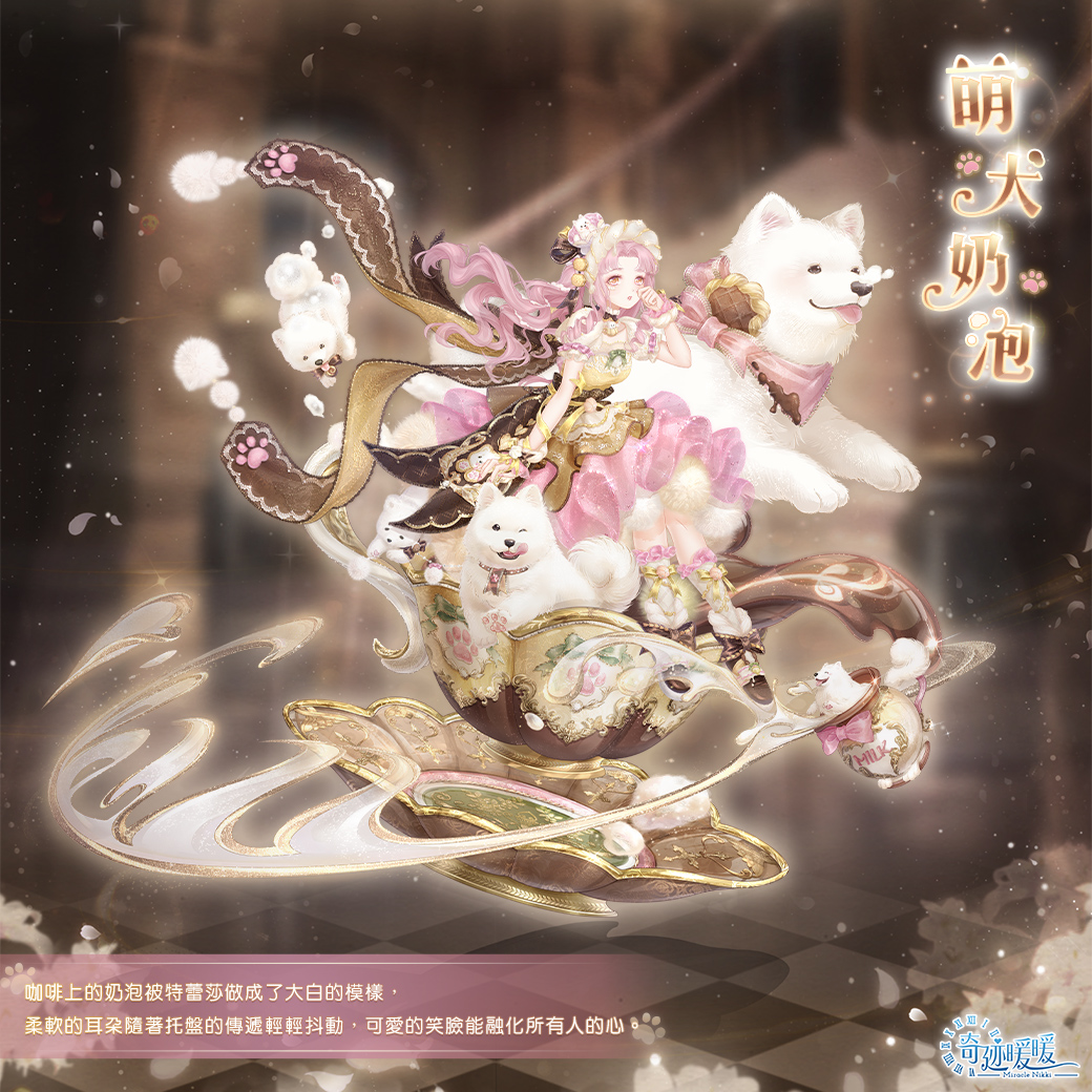 累計儲值1440鑽石可獲得【萌犬奶泡】套裝。