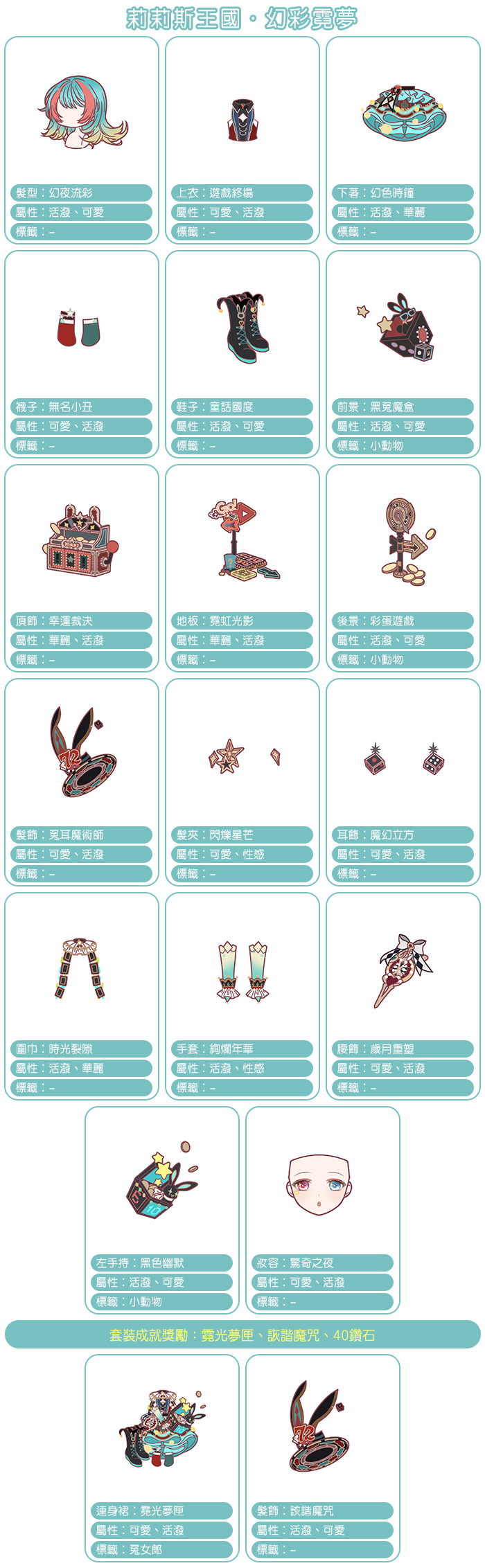 下方是【幻彩霓夢】的套裝部件介紹,暖粉們可以參考看看吧~
