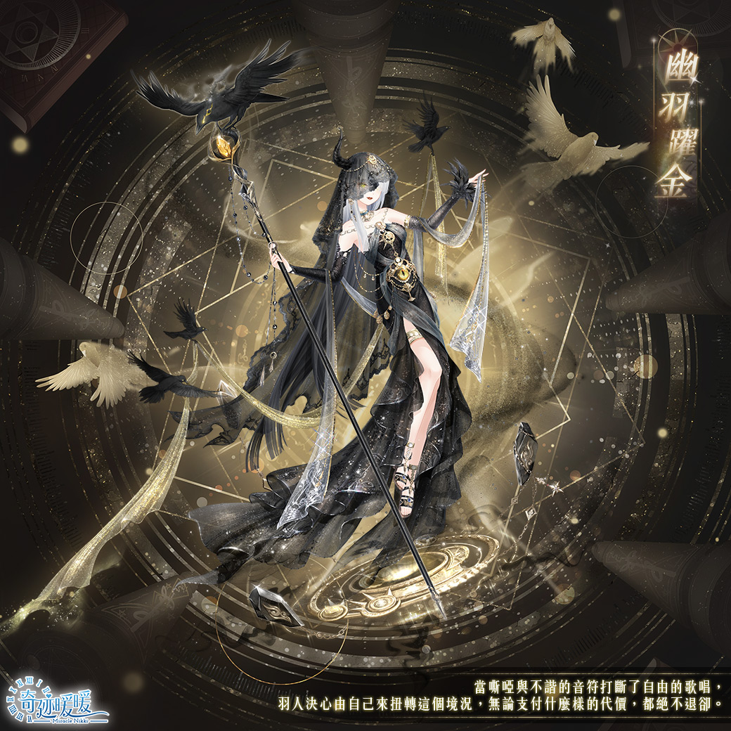 1. 集齊套裝【幽羽躍金】,可領取羽人CG同款換裝背景〔默夜玄機〕。