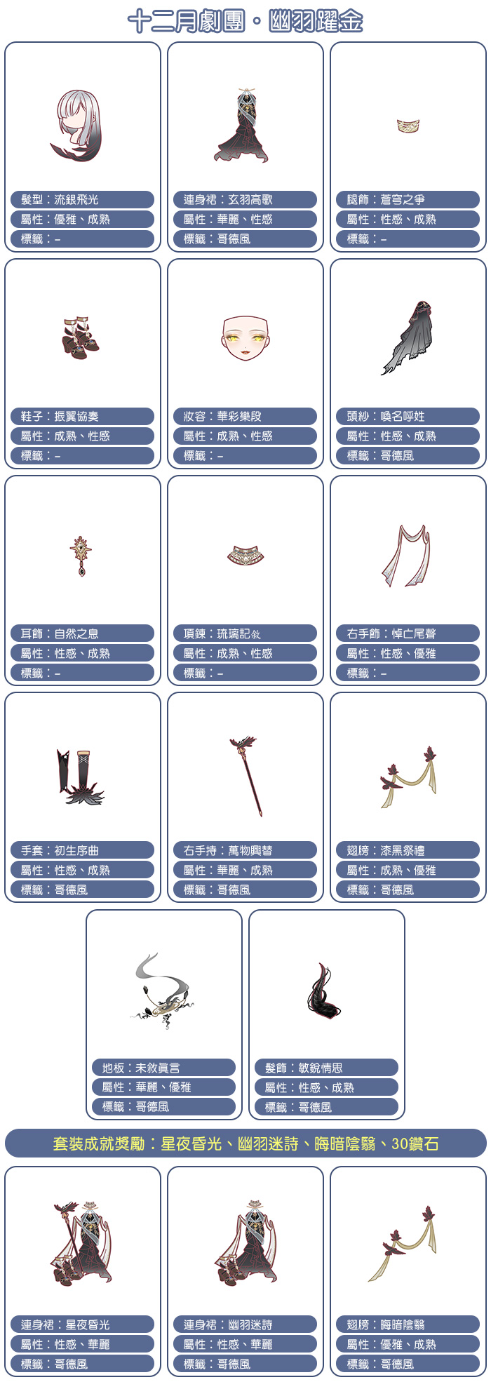 【幽羽躍金】套裝介紹: