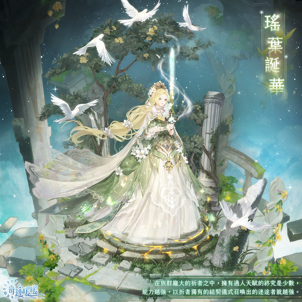 3. 集齊套裝【瑤葉誕華】,可領取祈者CG同款換裝背景〔曜日鳴泉〕。