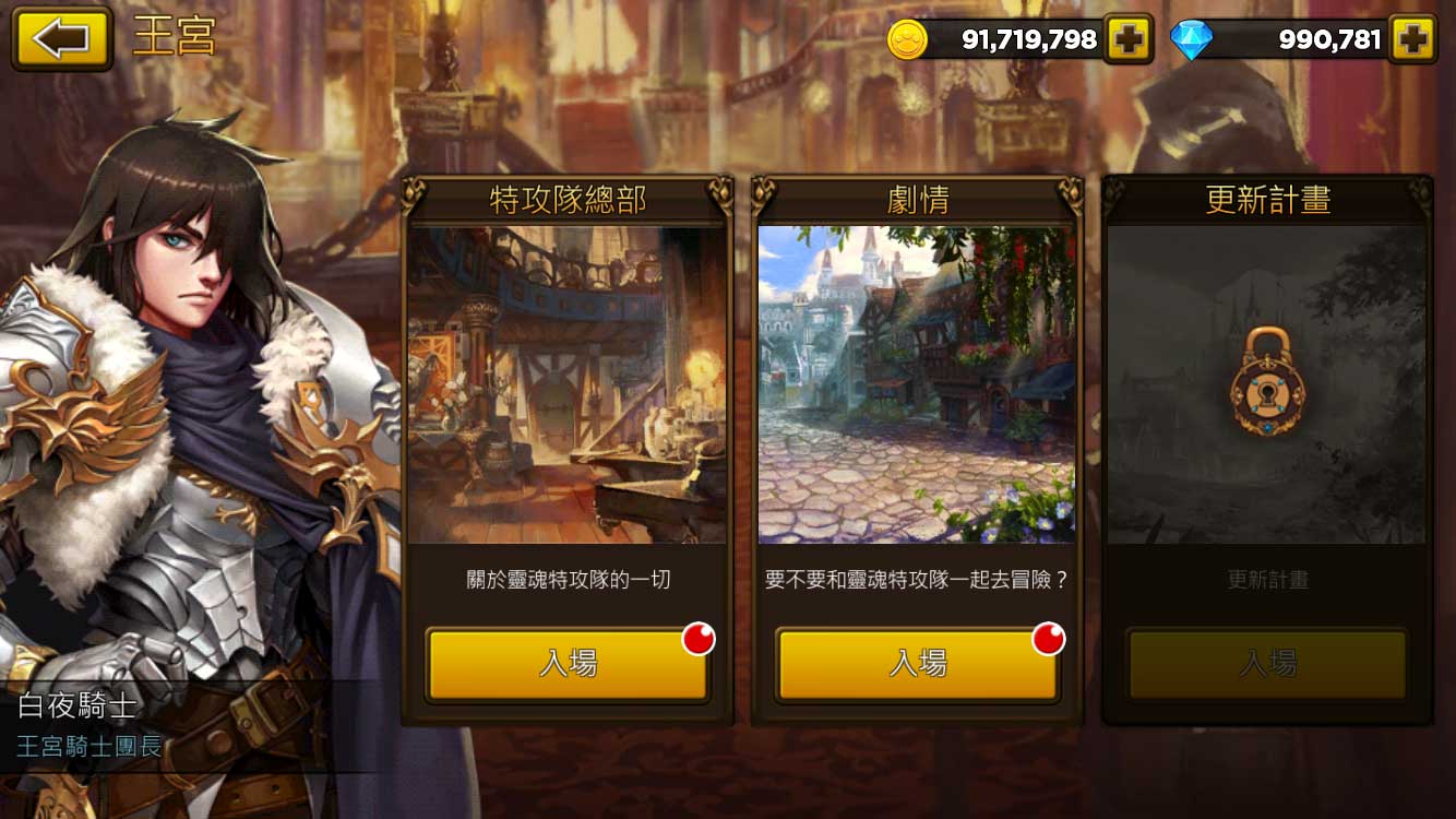 王宮:在此可以進行劇情攻略,還有15位靈魂王的隊長效果取得關卡。