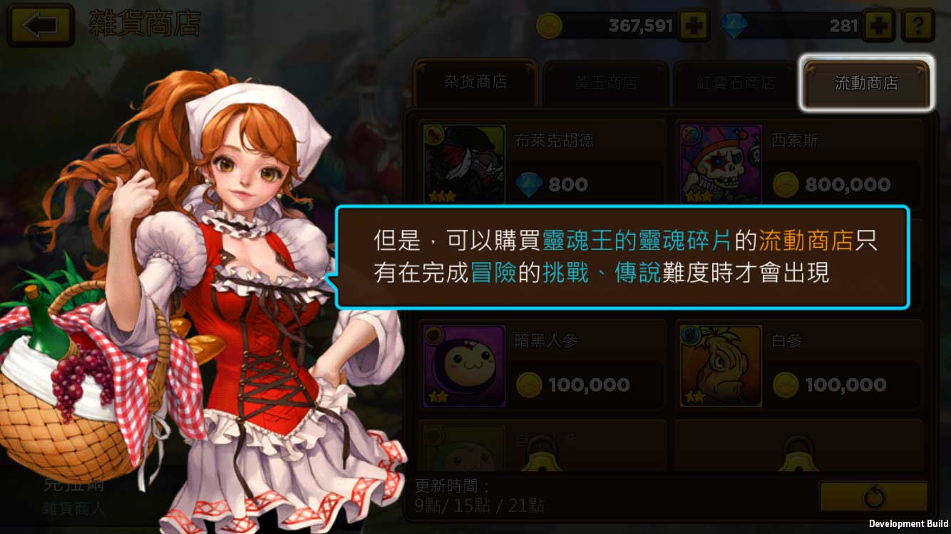 冒險家商店,裡面可以用金幣、黃玉、紅寶石買到各種英雄、成長肥料與轉職所需的結晶。