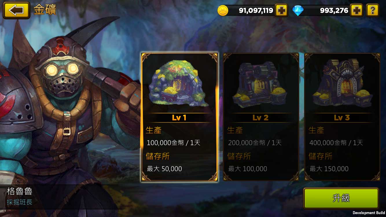 金礦:會產出金幣,可以升級提高數量。