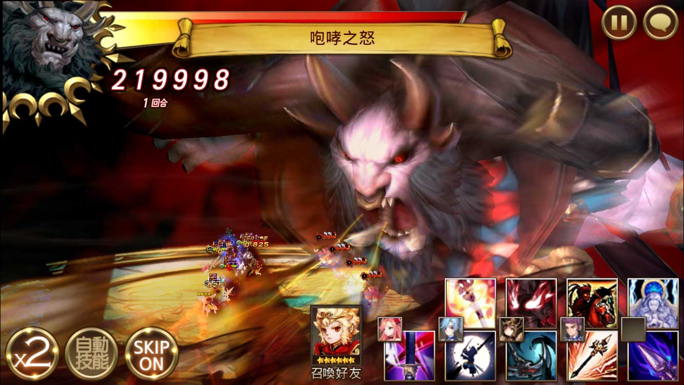 第二招「咆哮之怒」,也會對我軍全體造成傷害,還會召喚出手下來阻擋我軍繼續攻擊。