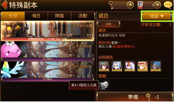 特殊副本的每日副本中新增了"地獄"難易度關卡囉~