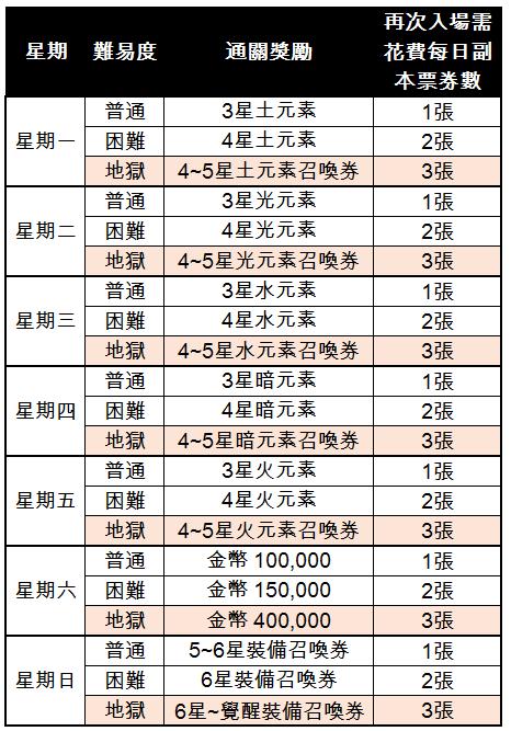 活動內容 : 活動期間內, 過關特殊副本4次以上(不限難易度), 即可獲得獎勵~