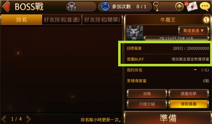 Ps : 正規BOSS賽季期間若達到目標傷害量, 該場BOSS戰分數結算之後接下來進行的賽季開始,會發動有益的Buff效果, 有益的Buff效果維持至下一賽季BOSS登場前的結算時間