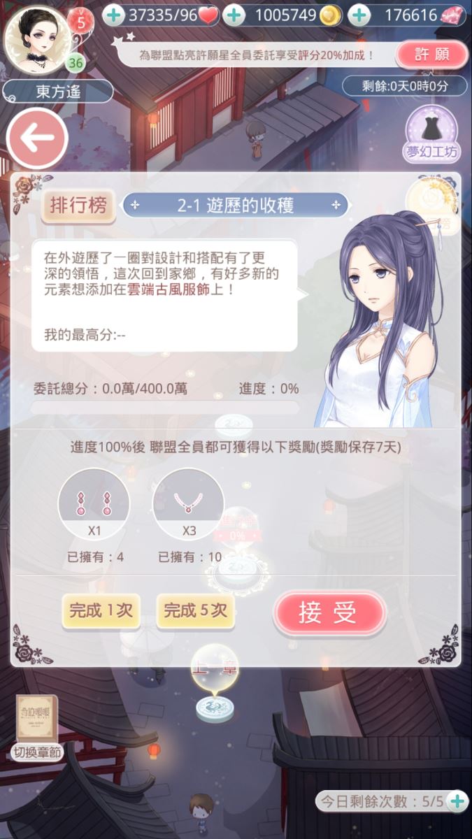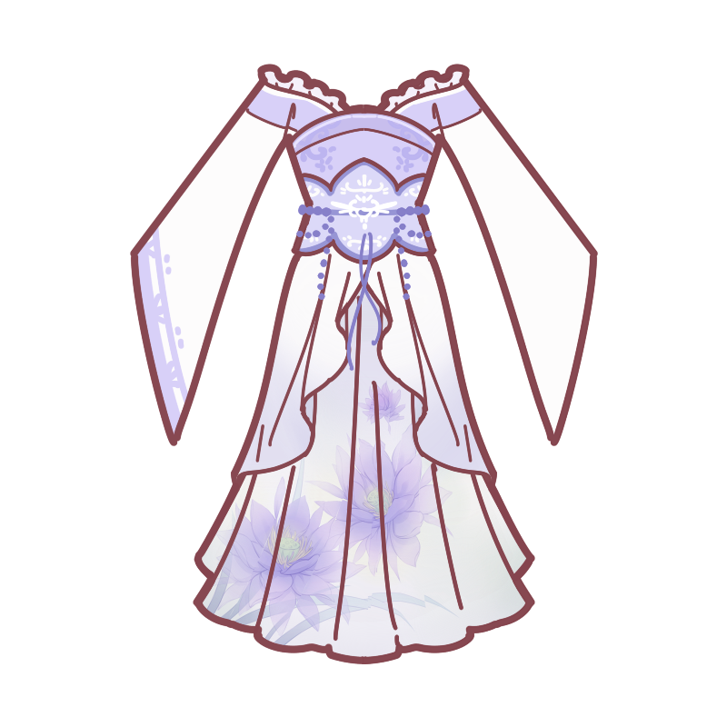這兩套果然都是雲端出品的服裝,每個服裝部件都有詩號說明背後故事;「秋水芙蓉」就像是在形容綾羅是個有傲氣,卻又十分容易親近的女子,而且心裡似乎也期待著一段戀情。整體屬性幾乎都是優雅、清純,更是符合綾羅的形象。