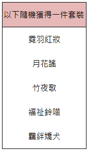 「霓羽紅妝」套裝獎勵:玉樹瓊、霜月天、霜月滿、35鑽石。