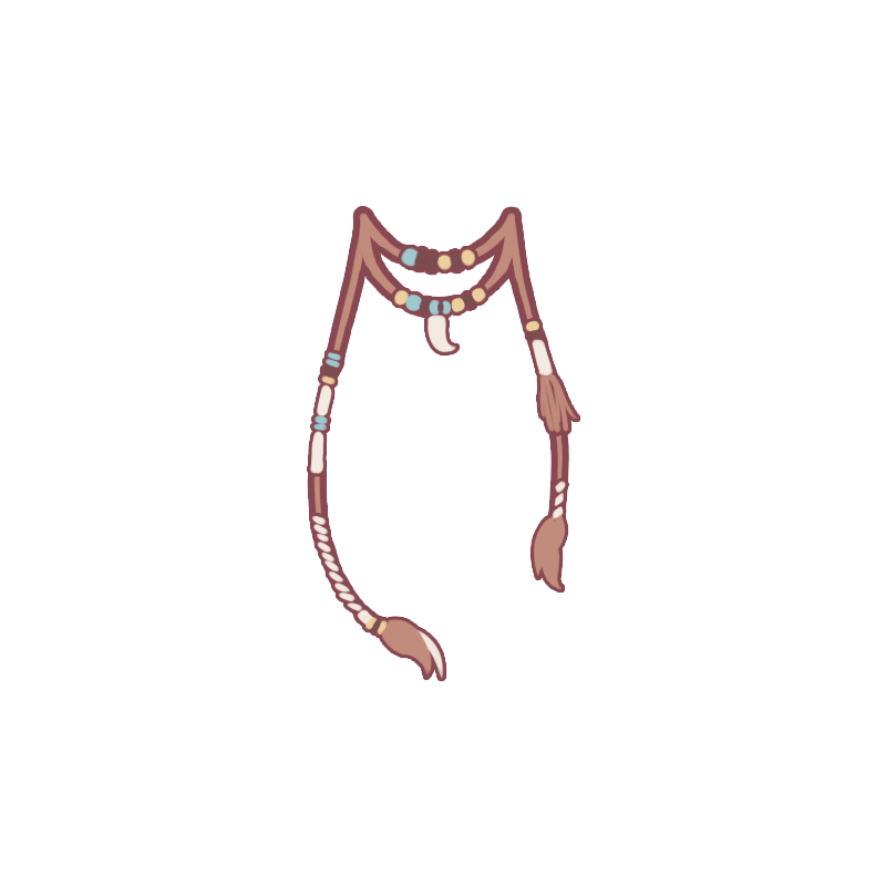 皮繩上串著羽毛和狼牙,還有各色美麗的珠子。是一個獵手送給暖暖的禮物。材料都來源於他的獵物。