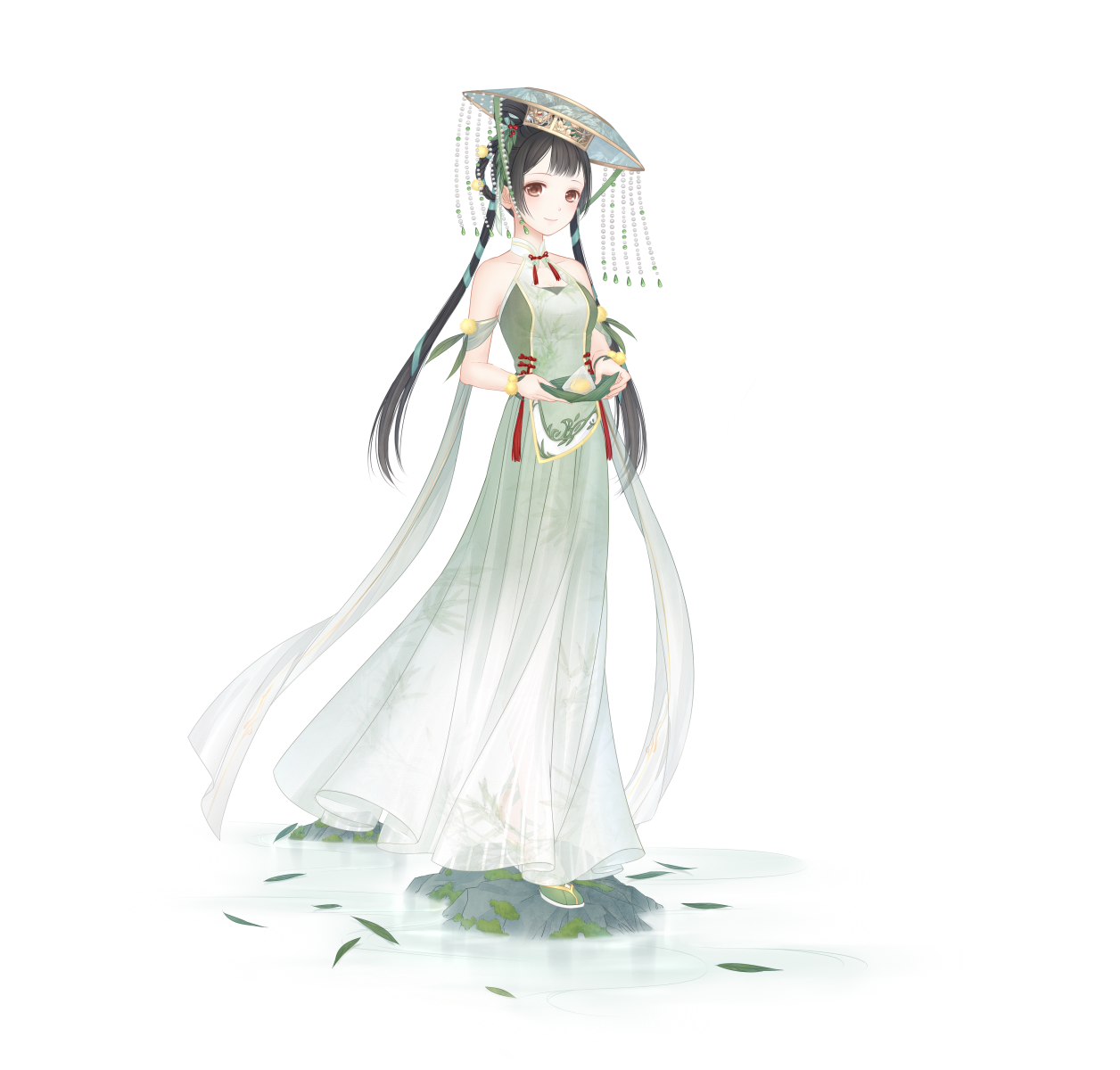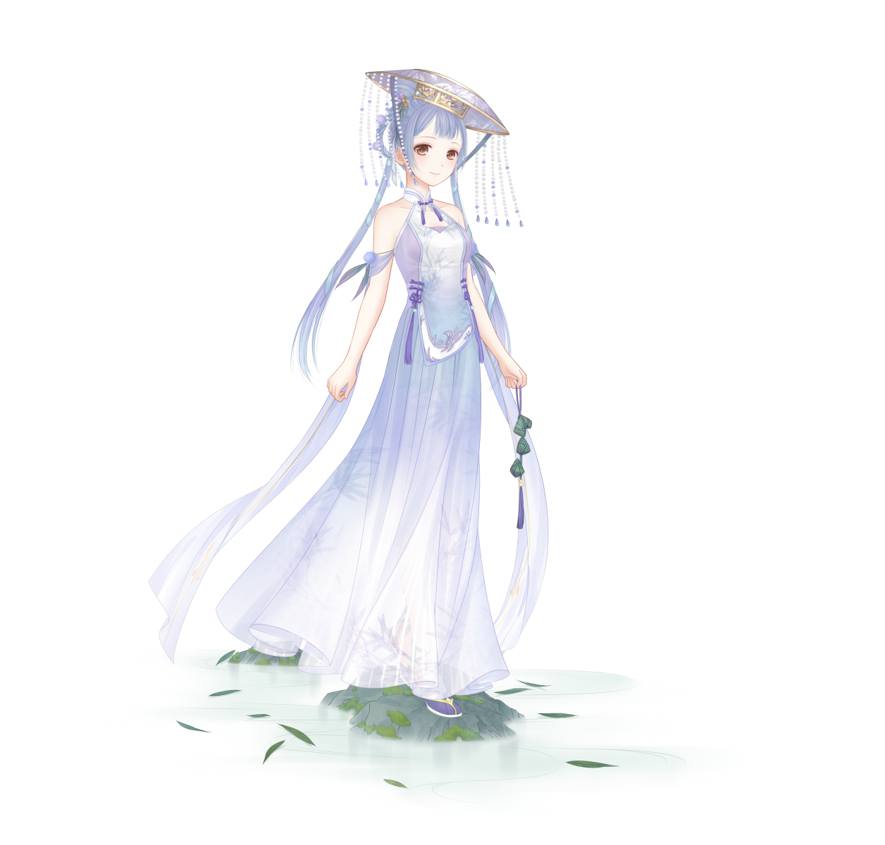 雲遊四海的九歌今年五月初五依舊回到了洛水河畔,那個與菖蒲相識、相知、相惜的洛水河畔。她身著玲瓏,她臨水而立、飄然如仙。其實她有一點點後悔的吧!如果從沒認識菖蒲,她現在還是好好的吧?九歌將她對菖蒲的思念化為玲瓏百福,希冀身穿這身套裝的人們能夠平安福泰。「呃,真的好甜哪…」九歌吃了一口菖蒲最愛的蜜棗甜粽,她將永遠記得菖蒲最後看見她的那抹微笑。